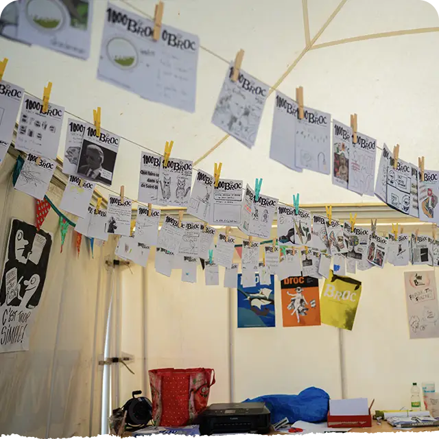 Pendant le Mille, le collectif “la Brioche” propose pour la seconde année aux visiteurs de créer leur fanzine… Le collectif la Brioche rassemble divers artistes aux multiples casquettes. Ensemble ils éditent Broc, un fanzine dédié à la bande dessinée, à la poésie et aux arts graphiques.