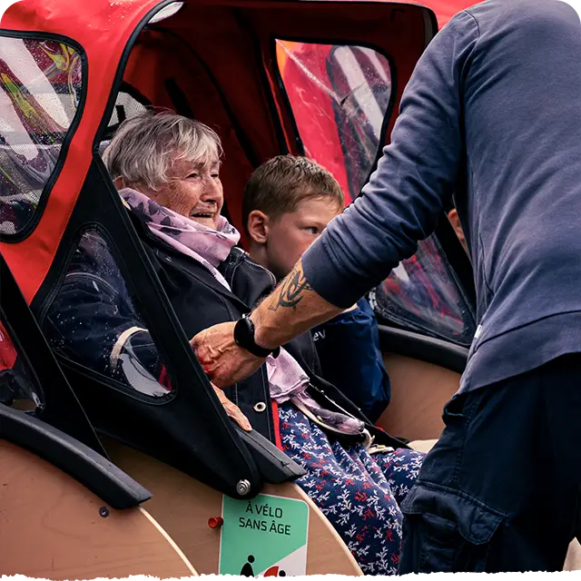 L’association Les Vagabonheurs propose des balades en triporteur au grand air et en toute sécurité à des personnes âgées en établissement ou à leur domicile, ainsi qu’aux personnes à mobilité réduite. Les membres des familles et les amis sont invités à participer aux balades en les accompagnant dans les triporteurs ou à vélo.